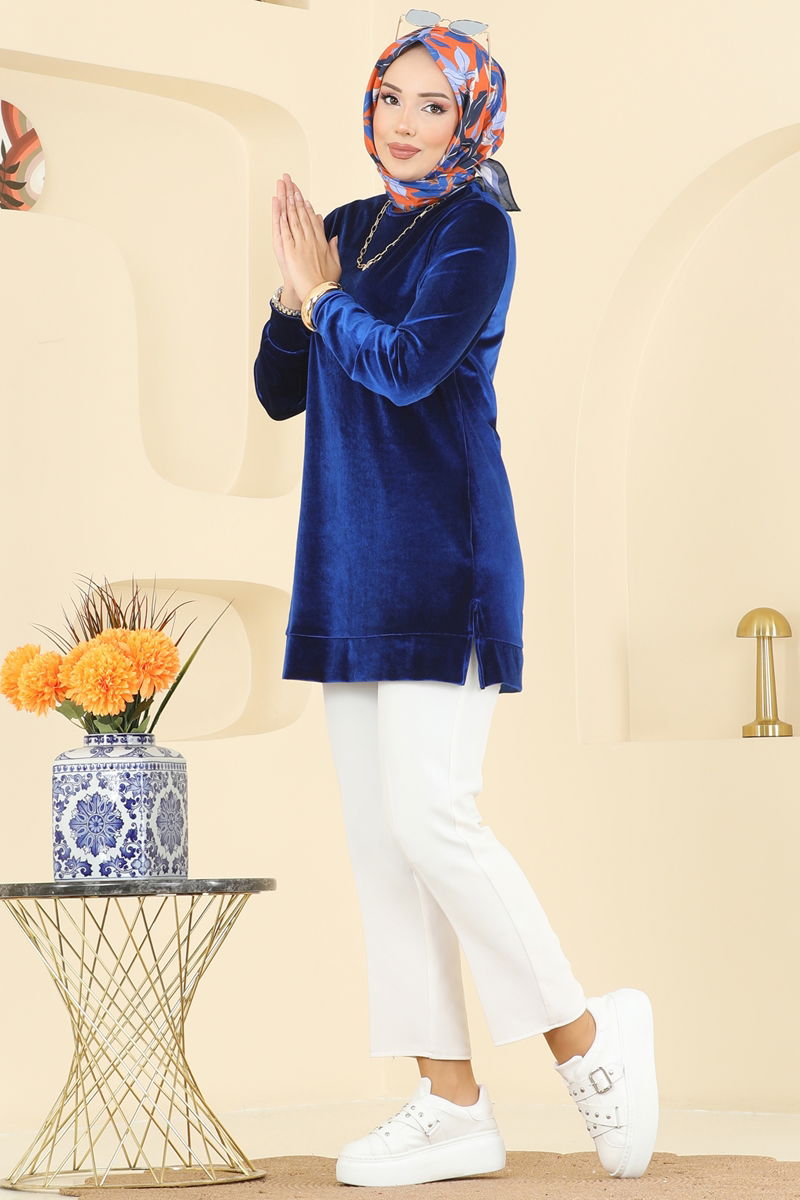 Sırttan Düğmeli Kadife Tunik ASM2833-MS Saks
