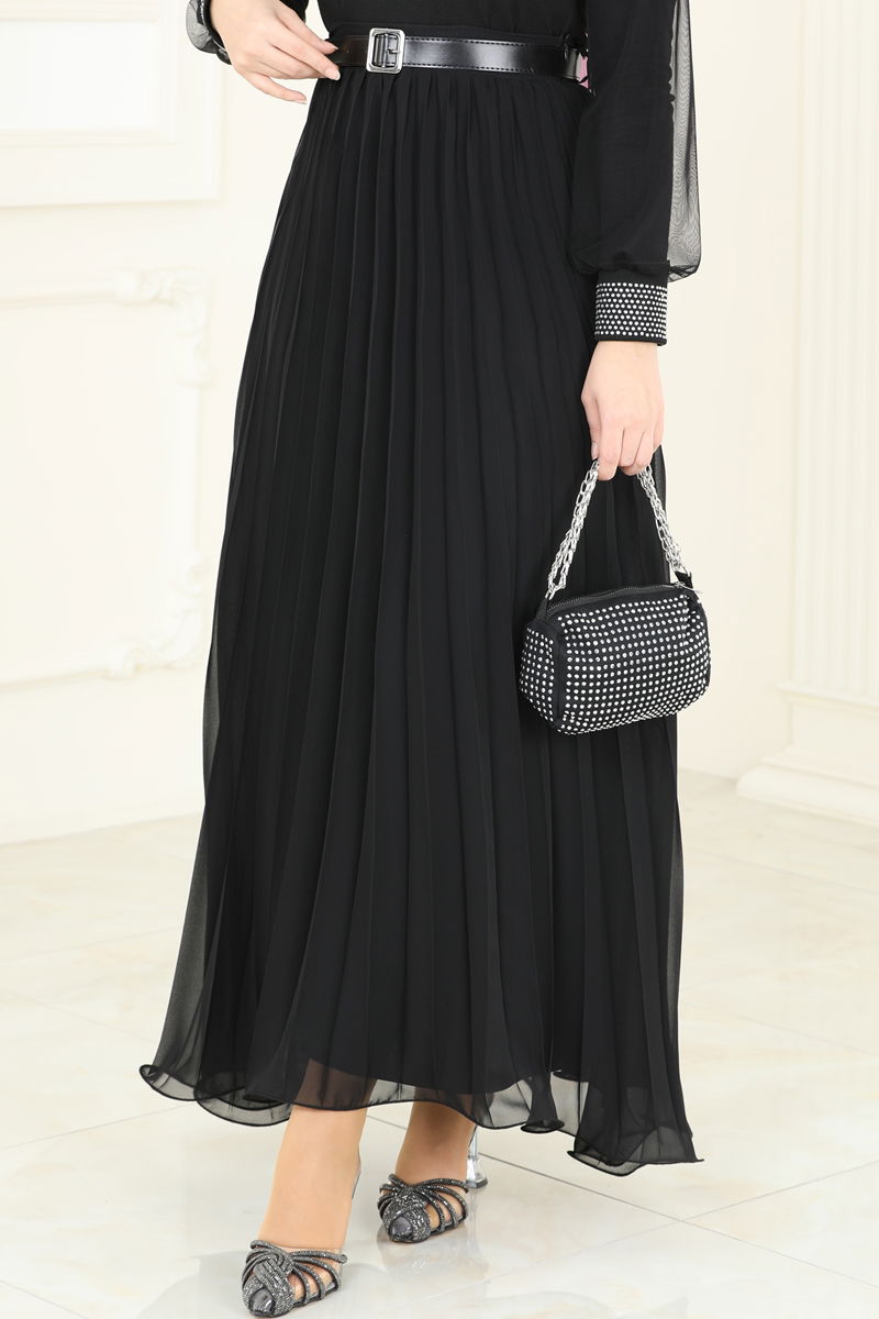 Elegant and modern, the Ruffled Chiffon Skirt is suitable for all seasons! This skirt can be washed at 30 degrees with delicate care and is made from chiffon fabric with a lining. Offering both comfort and a stylish look, it features a zippered waist for easy wear. The included belt, with its ends stitched to prevent waviness, can be optionally removed. An ideal choice for those who want to achieve elegance in modest fashion!
