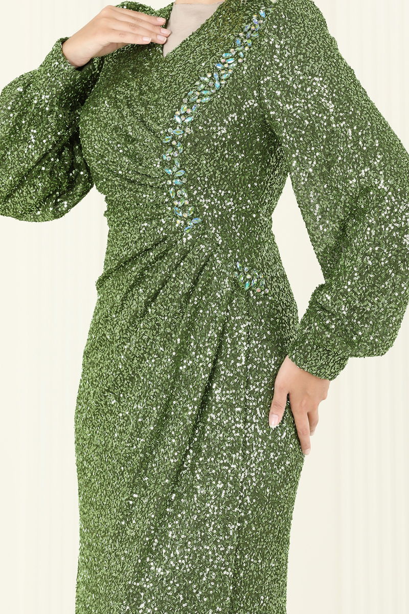 SUAL Önü Drape Detaylı Abiye 5238D170-MS Haki