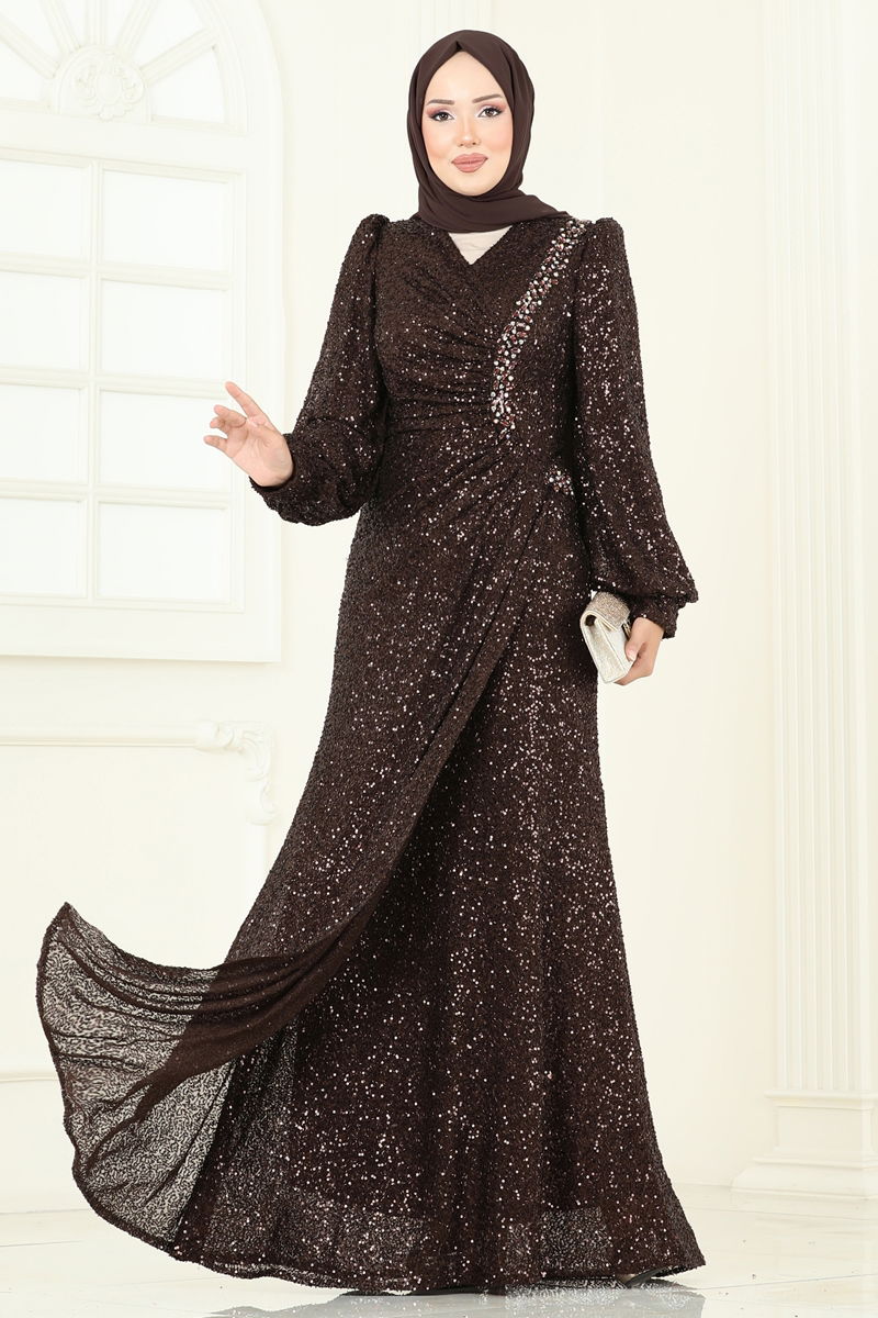 SUAL Önü Drape Detaylı Abiye 5238D170-MS Kahve