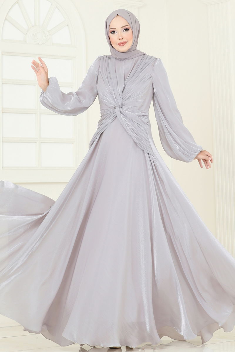 SUAL Önü Drapeli Şifon Abiye 5286D170-MS Gri