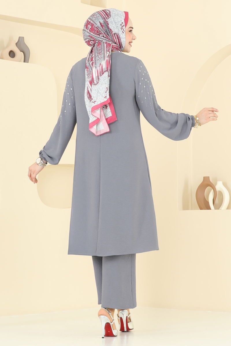 Taş Ayrıntılı Aerobin Kıyafet Seti - Gri