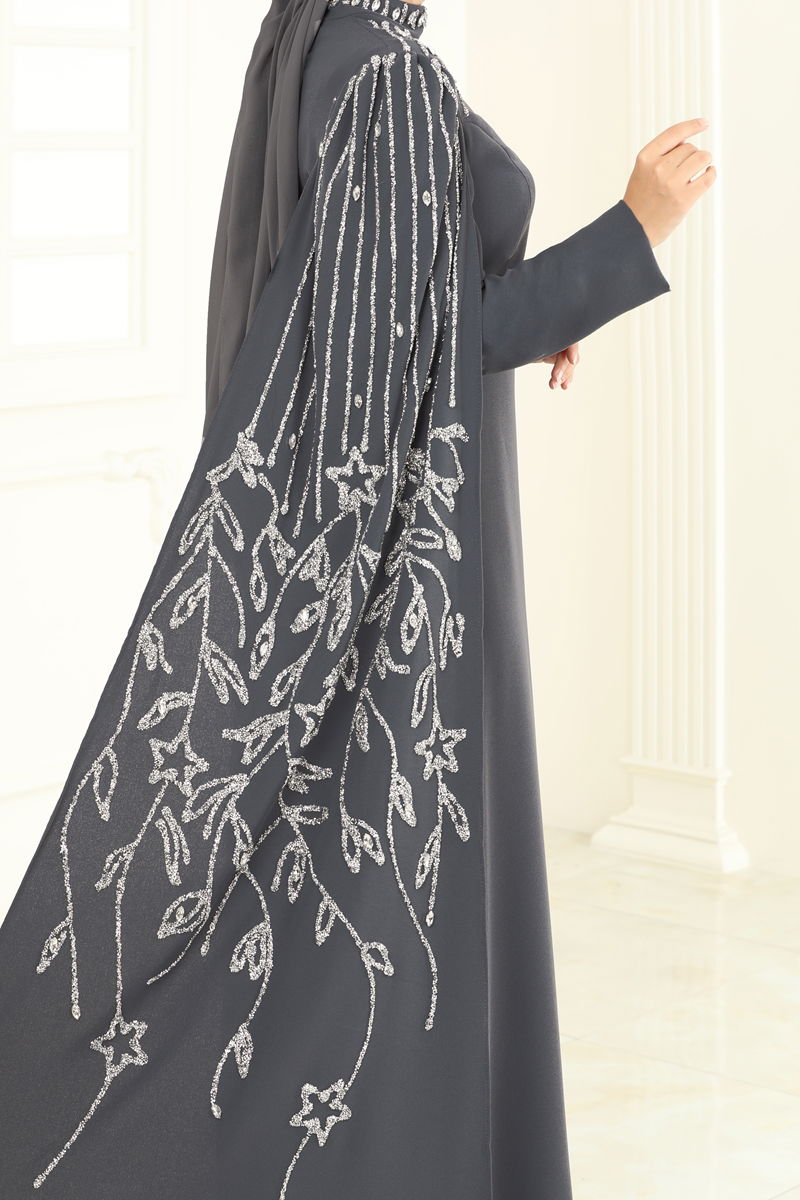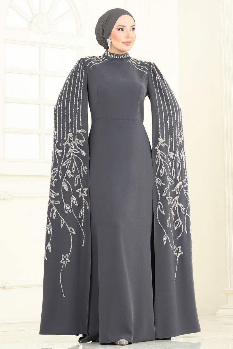 Taş Detay Pelerinli Abiye 5696EDF311-MS Antrasit