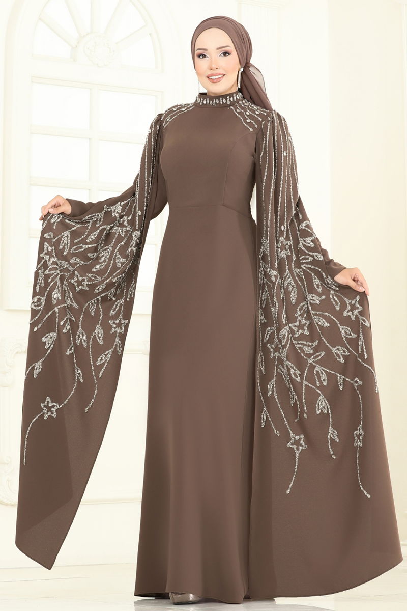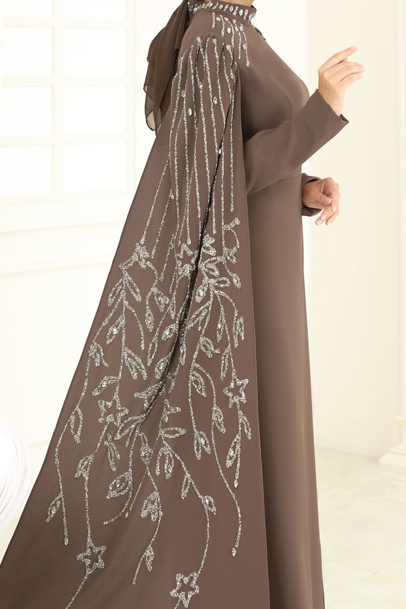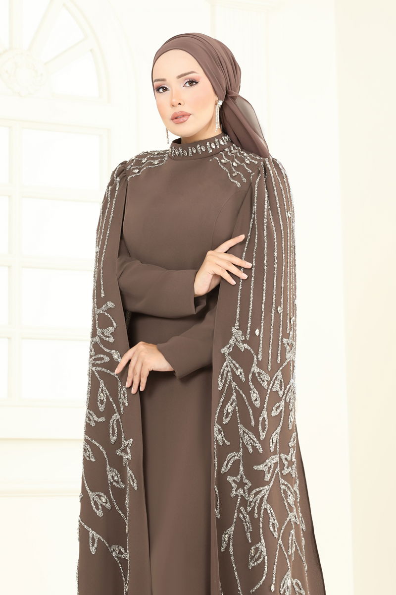 Taş Detay Pelerinli Abiye 5696EDF311-MS Koyu Vizyon