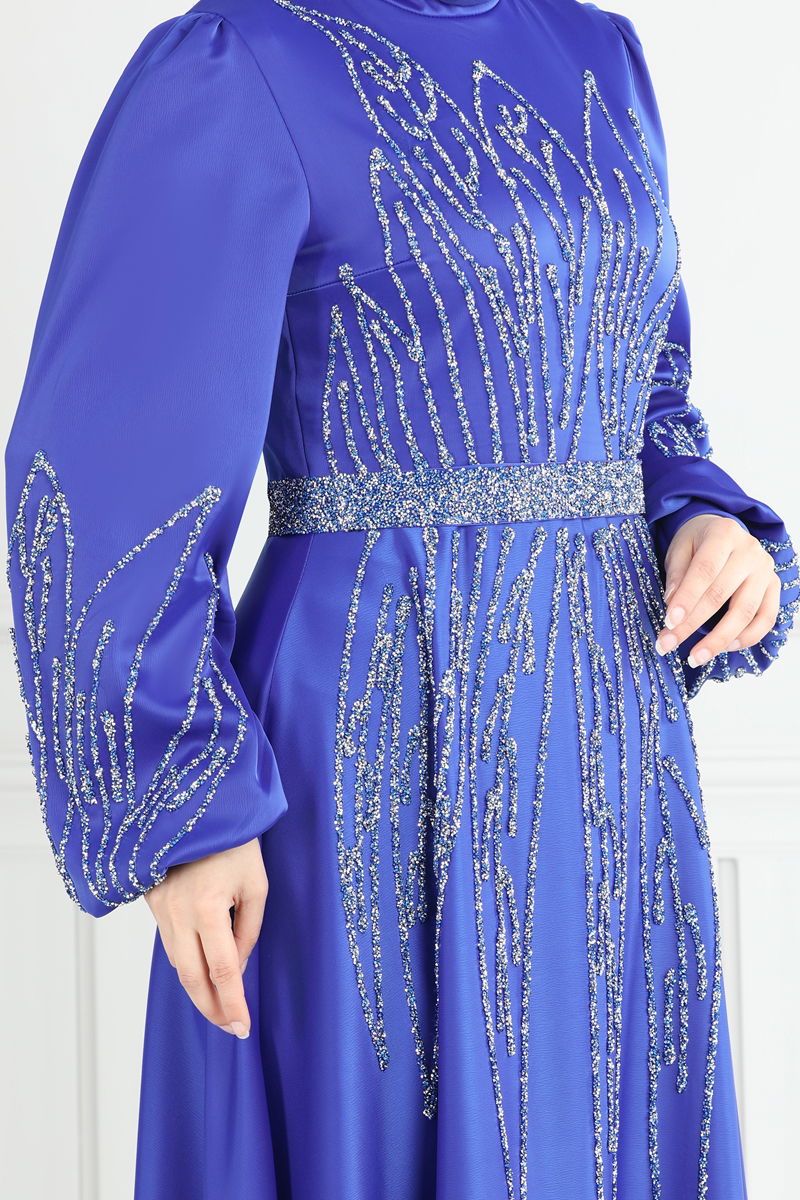 Taş Detay Saten Abiye 5675EDF311-MS Saks