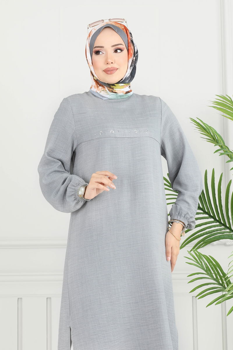 Taş Detay Tesettür Tunik 3123HBS856-MS Gri