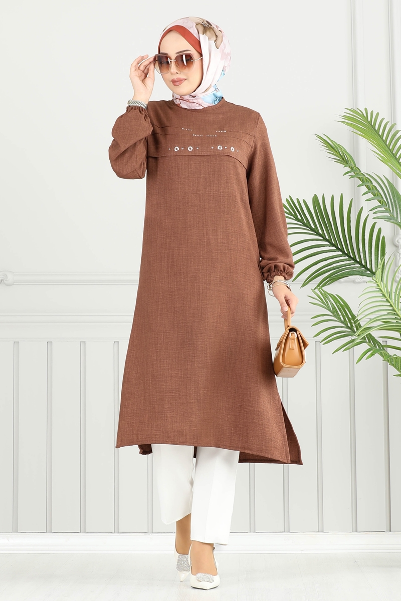 Taş Detay Tesettür Tunik 3123HBS856-MS Taba