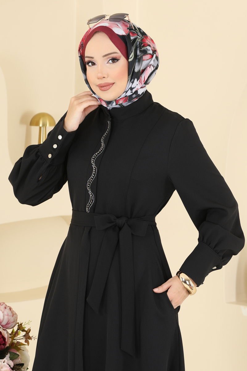 Taş Detaylı Elbise Ferace 2760SL432-MS Siyah