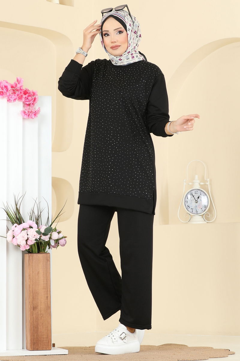 Taş Detaylı İki İp Takım 206OZN1046-MS Siyah