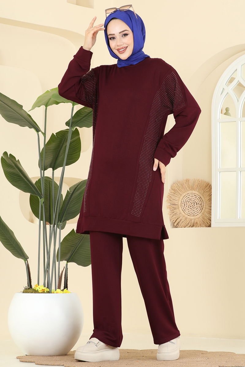 Taş Detaylı İki İplik Takım 2744AYD574-MS Bordo