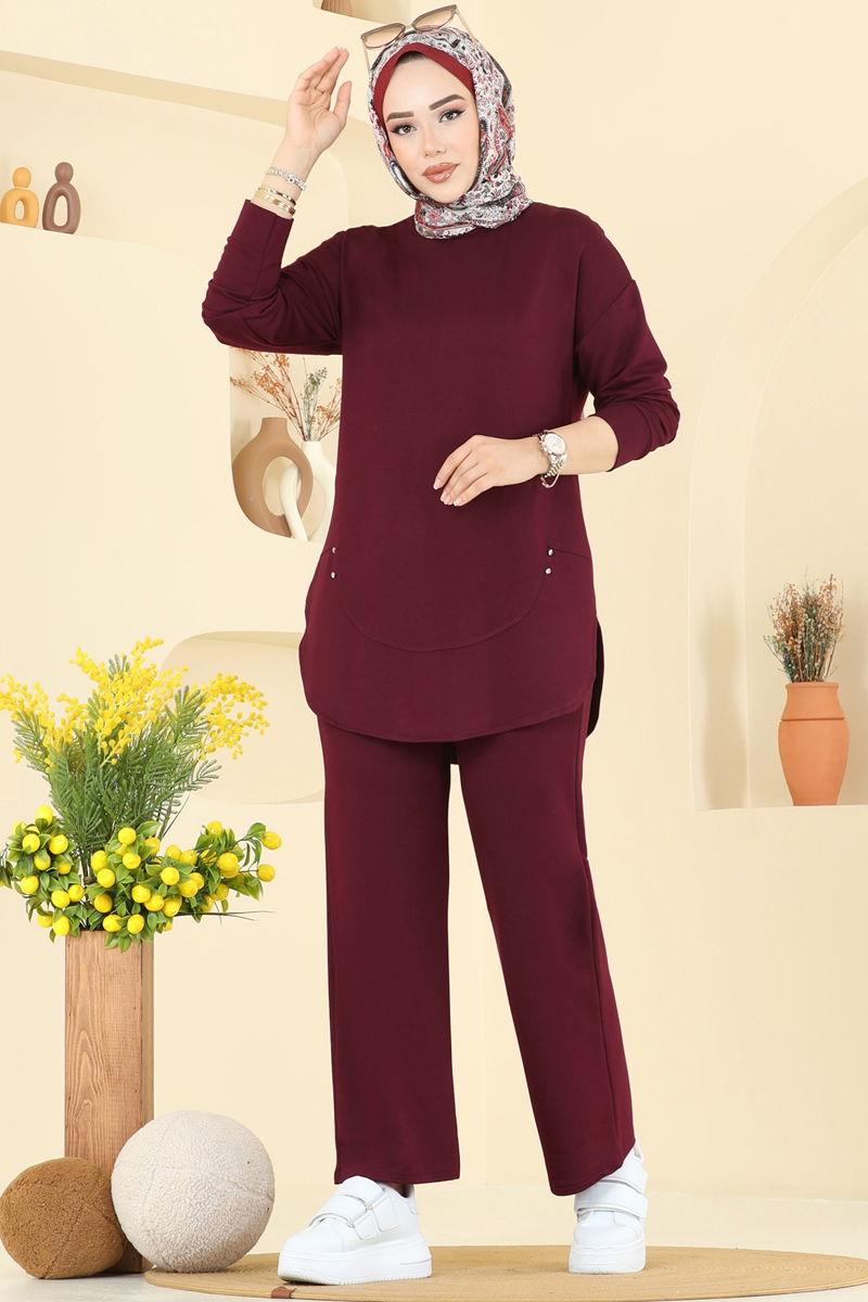 Taş Detaylı İkili Takım 2728AYD574-MS Bordo
