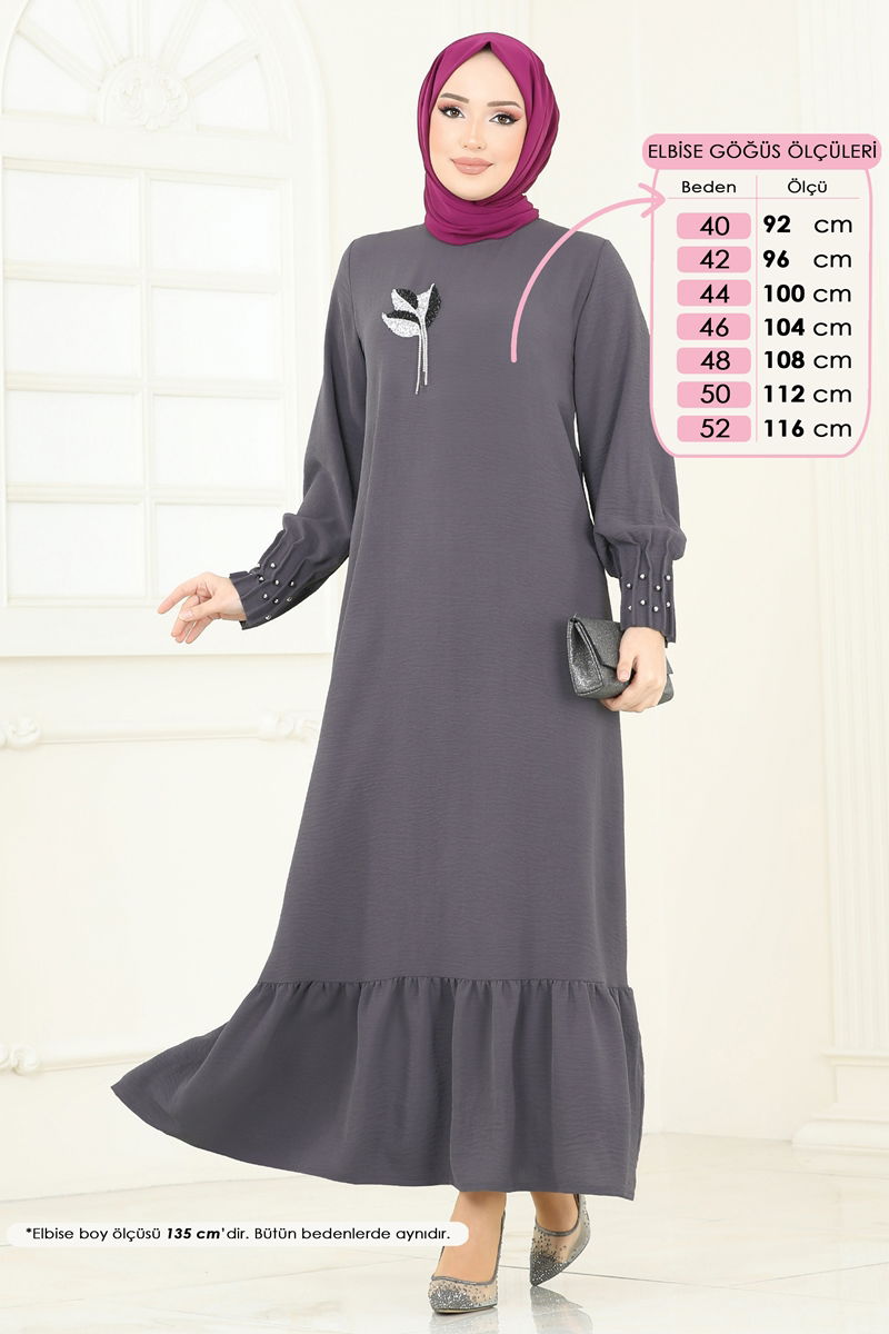 Taş Detaylı Şık Elbise 3077HBS856-MS Antrasit