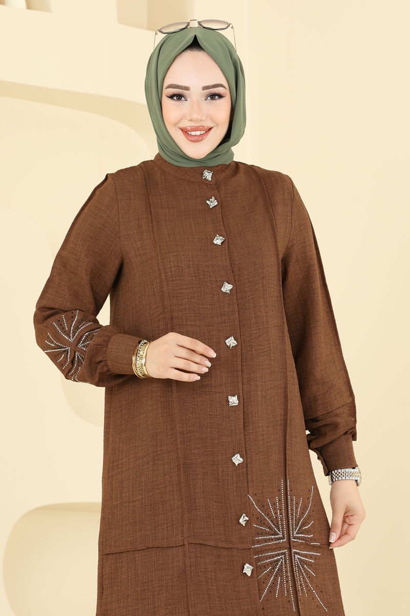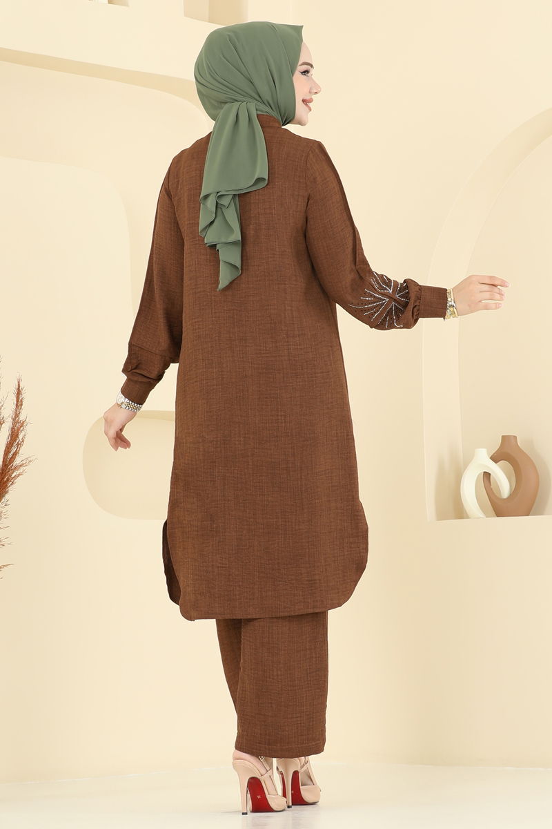 Kahverengi Sofia Taşlı Takım