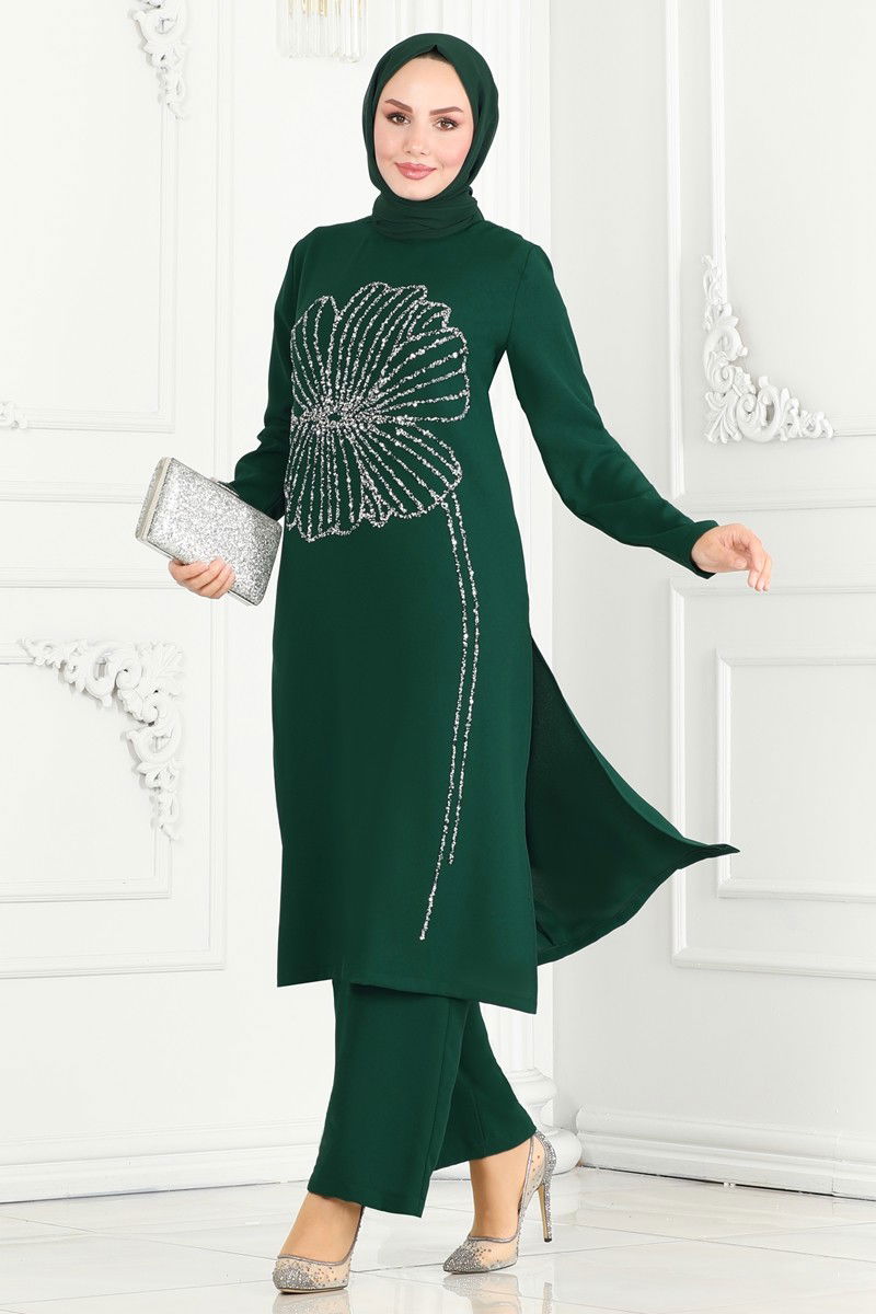 Taş Detaylı Tesettür Takım 5967AB368-MS Zümrüt