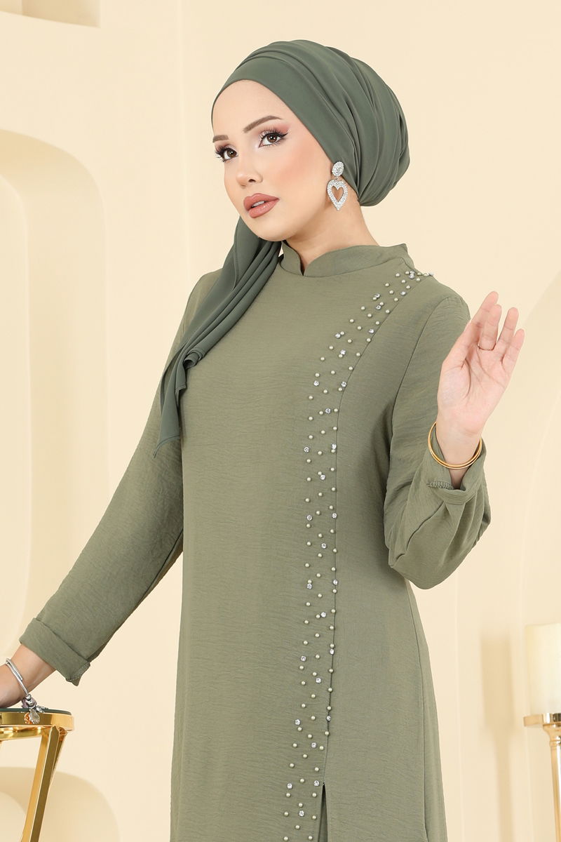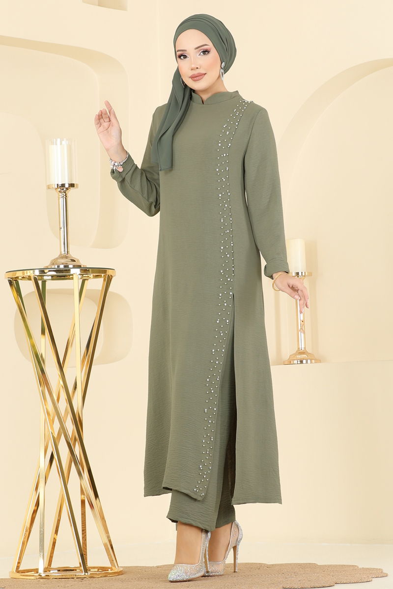 Taş Detaylı Yırtmaçlı Takım PL9175-MS Çağla