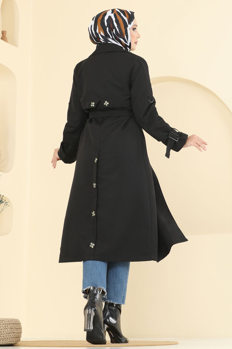 The Cuffed Belt Detailed Trench Coat is a stylish modest wear piece designed for the autumn and winter seasons. This trench coat combines classic and modern lines with its cross-collar and front-button design, made from durable Amozon fabric. It also features a machine washable at 30 degrees on a gentle cycle. The slit buttons serve as an additional accessory, while the lined design offers extra comfort in cold weather. The belt detail has fixed ends, providing a unique design, which you can opt out of if preferred. Also equipped with practical pockets, this trench coat is an elegant must-have in every wardrobe.