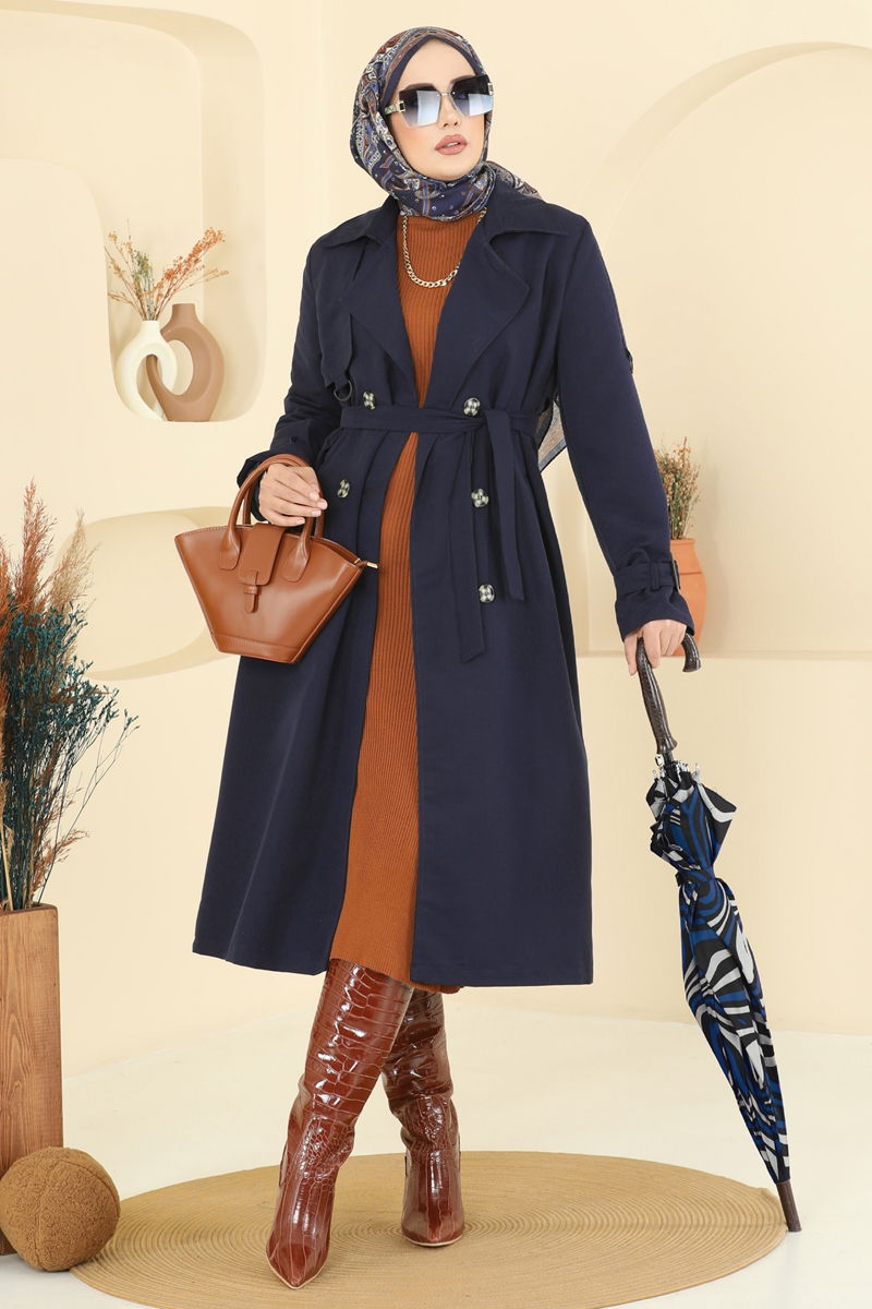 The Cuffed Belt Detailed Trench Coat is a stylish modest wear piece designed for the autumn and winter seasons. This trench coat combines classic and modern lines with its cross-collar and front-button design, made from durable Amozon fabric. It also features a machine washable at 30 degrees on a gentle cycle. The slit buttons serve as an additional accessory, while the lined design offers extra comfort in cold weather. The belt detail has fixed ends, providing a unique design, which you can opt out of if preferred. Also equipped with practical pockets, this trench coat is an elegant must-have in every wardrobe.