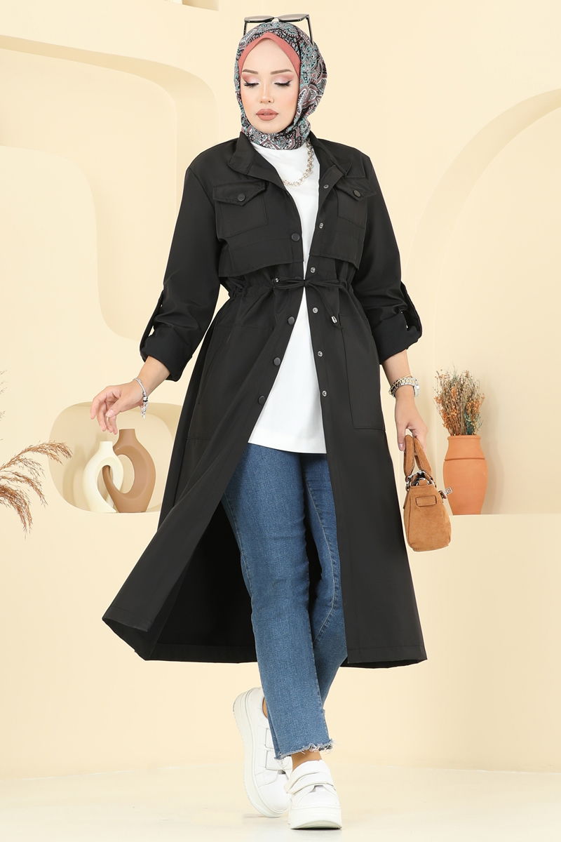 Product Feature : It is a new season hijab fashion product. It has a laced waist. The product has a Half Judge collar. The product has From the front buttons. Unlined. Pocket available. There may be a tonal difference in the product due to concept photo shoots.
