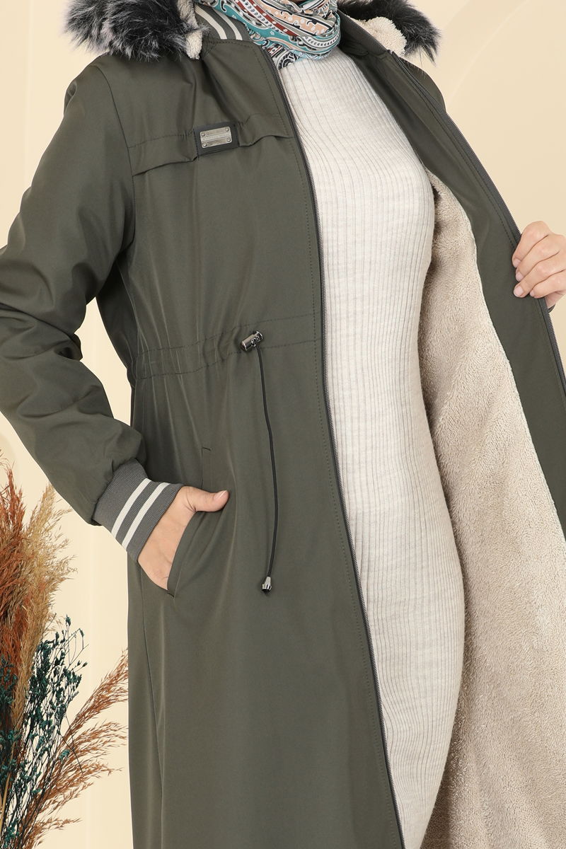 Product Feature : It is a new season hijab fashion product. The hood is detachable and can be used optionally. The lining is made of fur.. The product has a zipper at the From the front part. The product has an elastic waistband. Hood fur is sewn into the product. The product has a pocket. There may be a tonal difference in the product due to concept photo shoots.