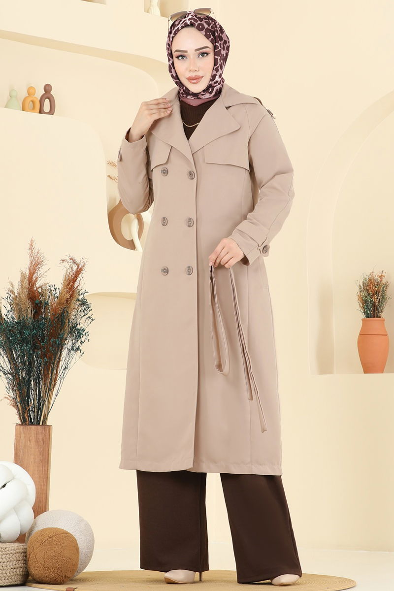 Product Feature : It is a new season hijab fashion product. The product has a Double-breasted collar. The product has half front buttons. It is lined. Belt included, optional not available. The product has a pocket. Cuff buttons are accessories. There may be a tonal difference in the product due to concept photo shoots.
