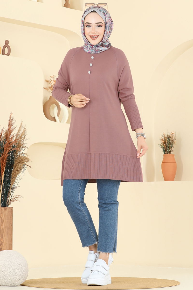 The Button-Detailed Knit Tunic is an ideal choice for those who prefer modest clothing. Perfect for autumn and winter, this tunic offers both comfort and style with its machine washable at 30 degrees on a gentle cycle feature. It comes with a crew neck and is unlined, presenting a modern look while its decorative buttons add a stylish touch. Made from knit fabric, it keeps you warm and comfortable. Available in standard sizes.