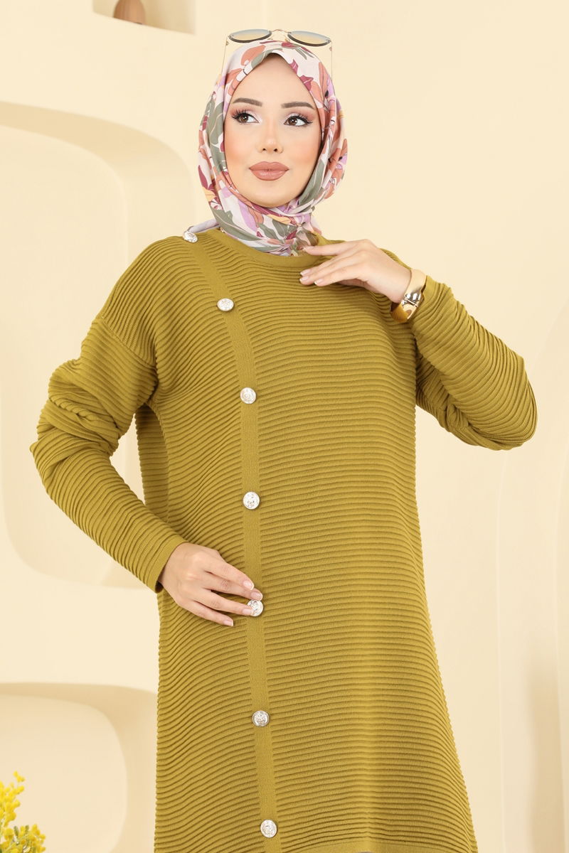 The Accessorized Buttoned Knit Tunic is a modest wear piece perfect for autumn and winter, offering both style and comfort. This garment can be washed gently at 30 degrees and is made from knit fabric. It features a crew neck and is unlined for added comfort. The buttons on the tunic serve as stylish accessories only.