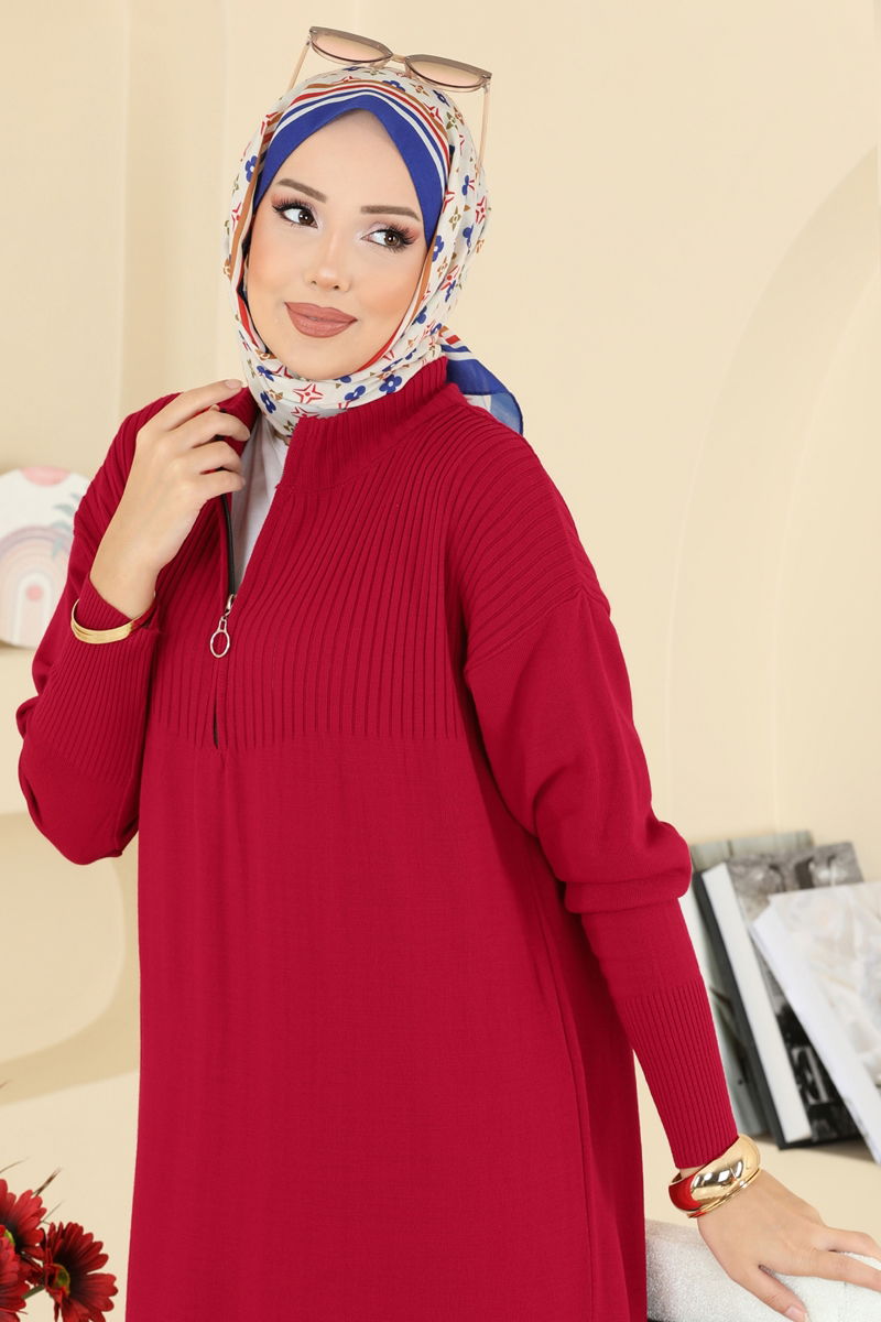 Elegant and comfortable, the Half-Zip Knit Tunic is specially designed for those who prefer modest attire. Made from soft knit fabric, this tunic keeps you warm during the autumn and winter months without compromising on style. Easily maintained with a gentle wash at 30 degrees, this tunic features a practical half-zip for ease of use. Available in standard sizes, it suits all body types, and its lining-free design ensures lightweight comfort. The half-stand collar adds a touch of elegance, making this tunic a stylish choice for the colder months.