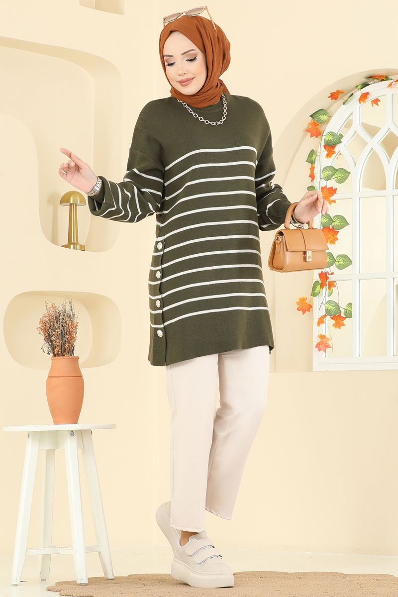 Product Feature : It is a new season hijab fashion product. The product has a Cycling collar. The tunic has a side slash.. Unlined. This product is not a combo. Buttons are accessories. Accessories are not included. There may be a tonal difference in the product due to concept photo shoots.