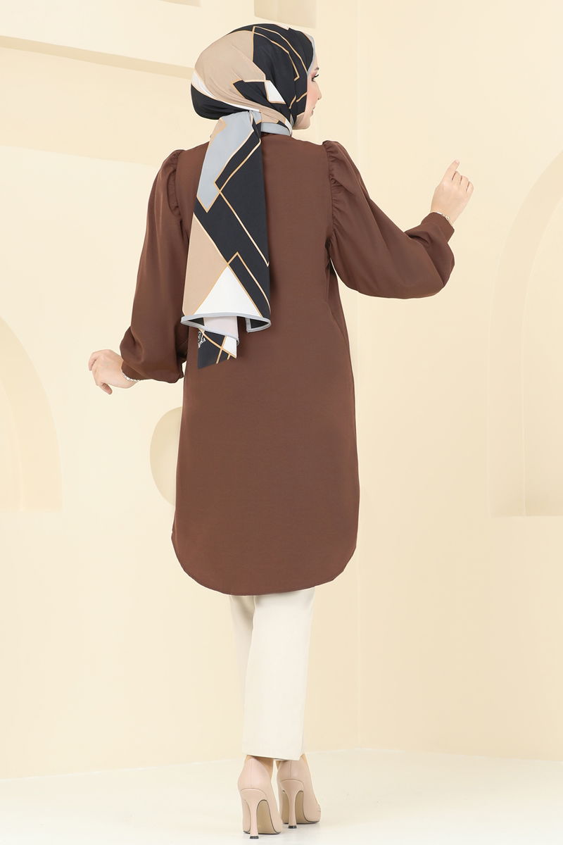 The Balloon Sleeve Hijab Tunic is a modest wear item that can be comfortably used in all seasons. It offers practical use with its machine washable feature at 30 degrees on a gentle cycle. Made from terrycotton fabric, it is durable. Its elegant shirt collar and front-button design ensure you stay stylish in any setting. With active breast pocket and cuff buttons, it promises functional use. The lining-free design offers a light and comfortable experience.
