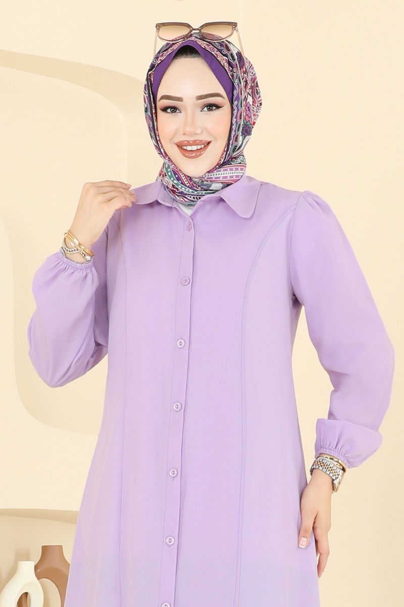 This stylish and comfortable Elastic Cuffed Terrycotton Tunic is the ideal modest wear that you can enjoy throughout all seasons. Made from terrycotton fabric, this tunic offers both elegance and comfort. It features a shirt collar and front button design for practical use. Elastic cuffs provide an easy dressing experience. Wash at 30 degrees without squeezing to maintain its delicate structure. Ideal for those who seek convenience and style in their daily wear.