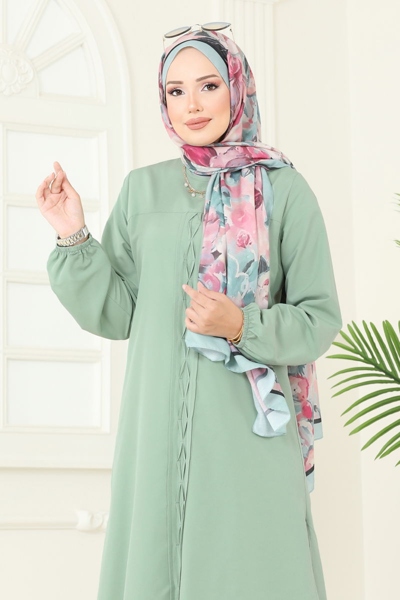 Product Feature : It is a new season hijab fashion product. It has a button that can be used from the back. The product is worn on the head. The product has a Cycling collar. The tunic has a side slash.. Unlined. The cuff is rubberized. There may be a tonal difference in the product due to concept photo shoots.