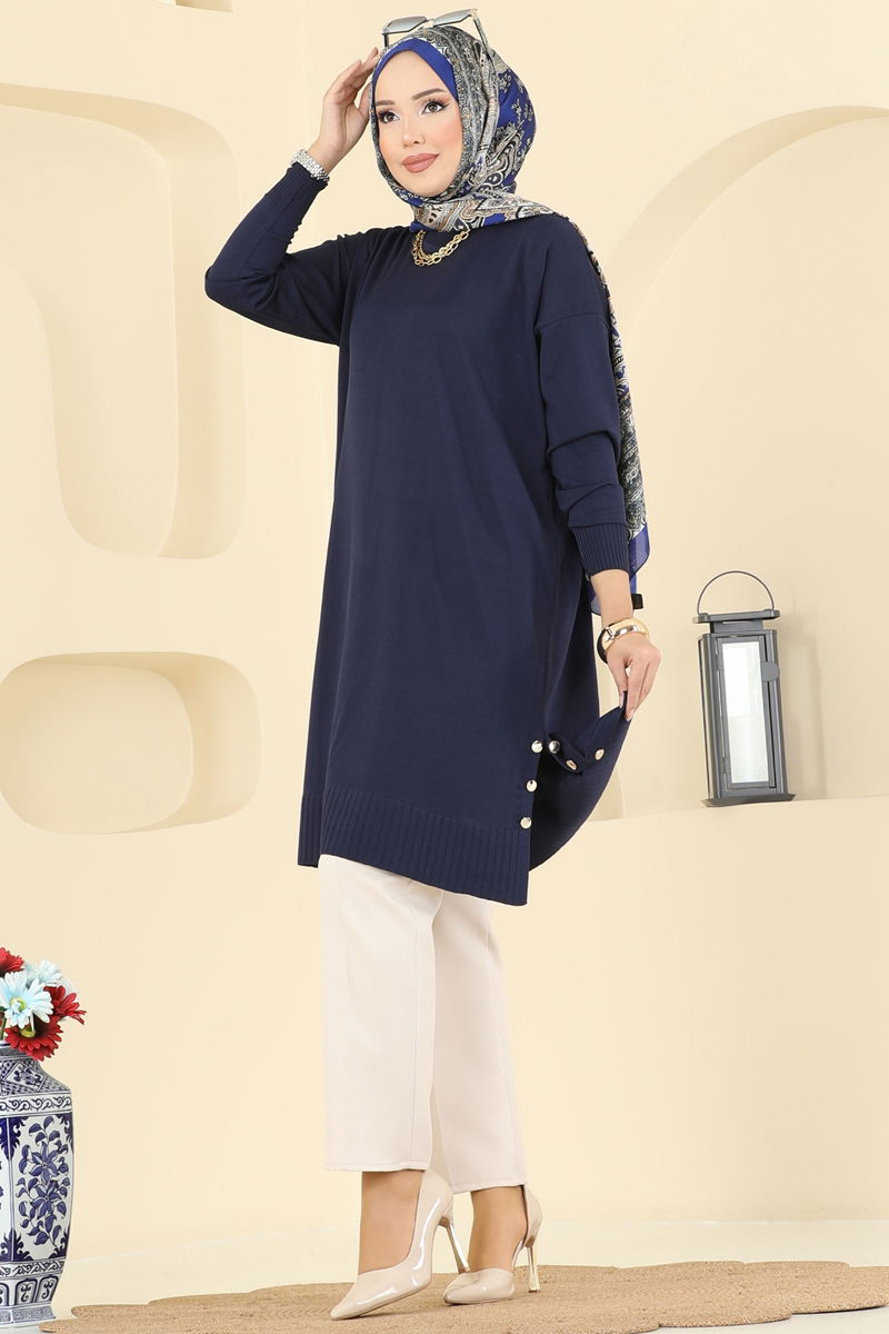 The Slit Buttoned Mercerized Tunic offers modern and elegant design to warm your autumn and winter days. Washable in delicate program at 30 degrees, this tunic is made from Mercerized fabric. Featuring a crew neck and decorative slit buttons, this eye-catching model is unlined and available in standard sizes (36-38-40-42-44). Designed for optimal comfort and style, this tunic is perfect for standing out in any setting.