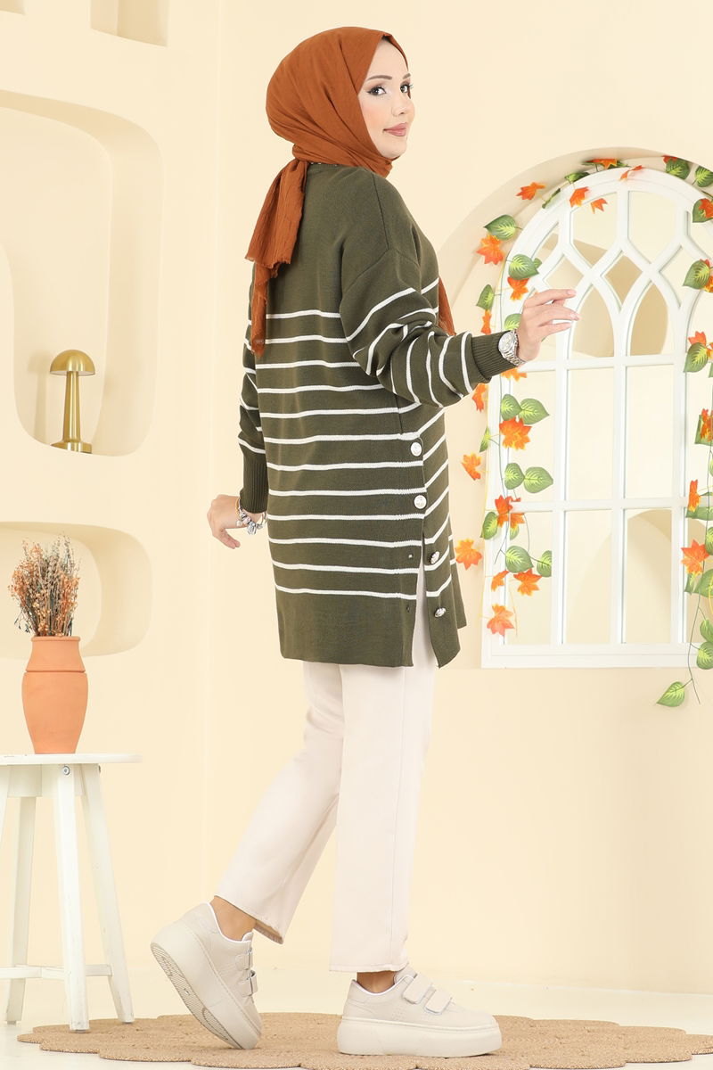 Tuniği Çizgili Triko Tunik 2751AYD574-MS Haki