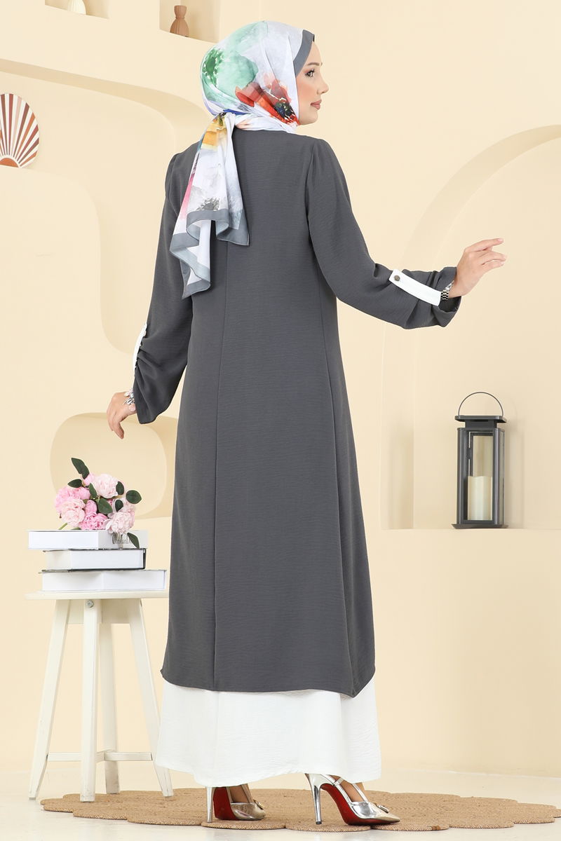 Tuniği Yırtmaçlı Elbiseli Takım 2742SL432-MS Antrasit&Ekru