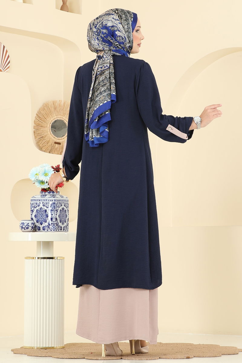 Ürün Detayları: Modern tesettür moda koleksiyonunun bir parçasıdır. Rahatlıkla kafadan geçirilerek giyilir. Bisiklet yaka tasarımına sahip. Tunik ön yırtmaç ayrıntısına sahiptir. Astarı yoktur. İç elbise kolsuzdur. Manşetlerdeki düğmeler fonksiyonel.Renk tonları çekim ışığına göre değişiklik gösterebilir.