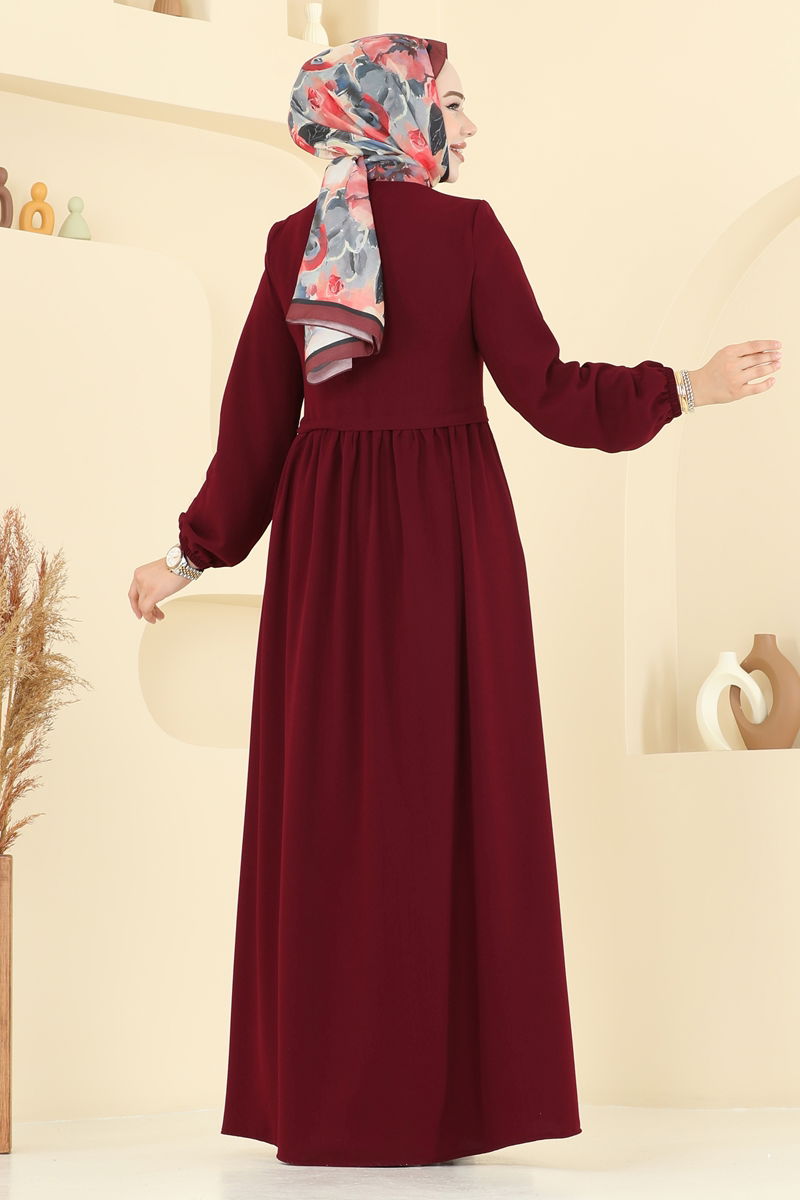 Bordo Renkli Krep Ferace ile Dikkat Çekici Elegans