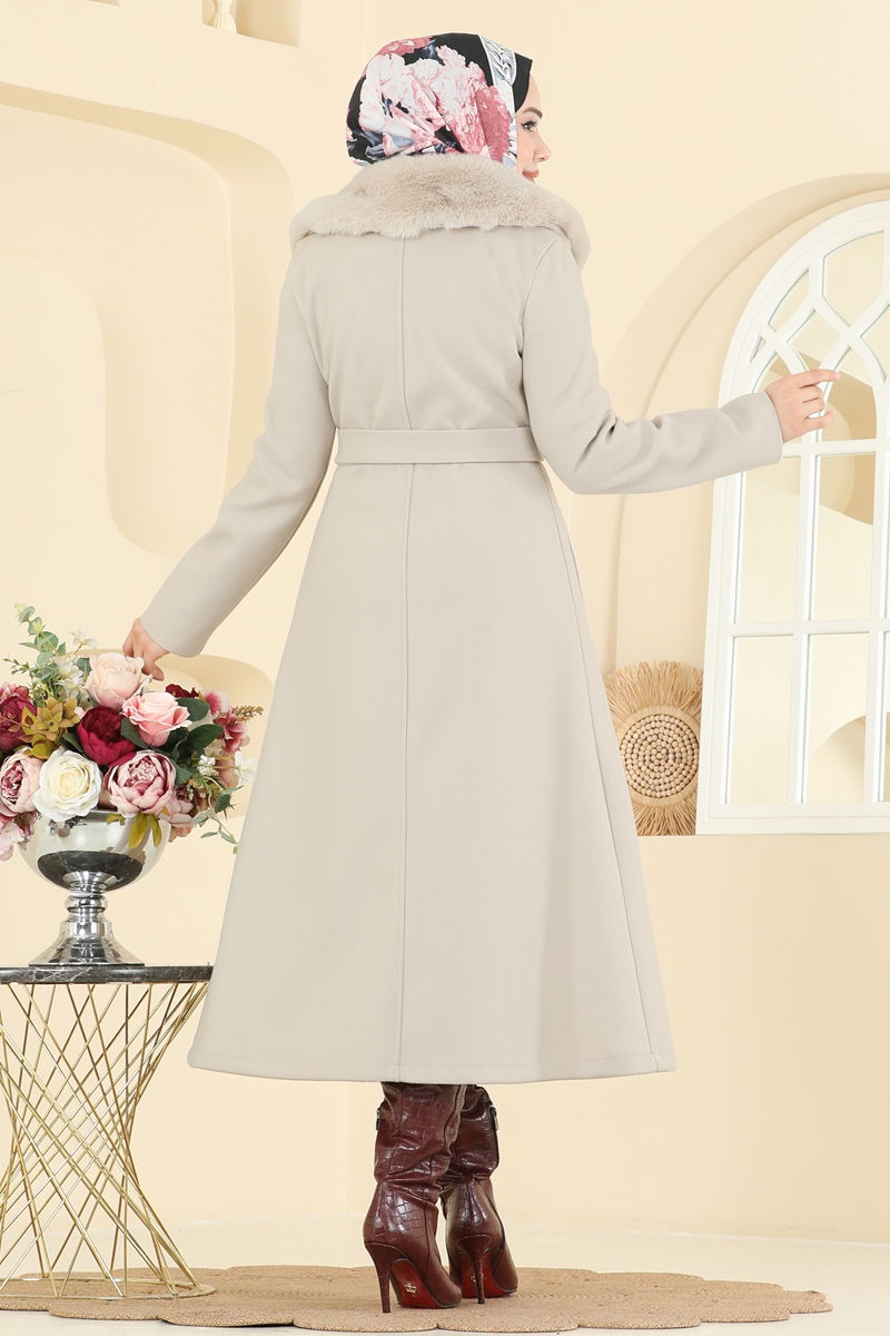 Yakası Kürklü Kaşe Kaban 6664YG95-MS Taş