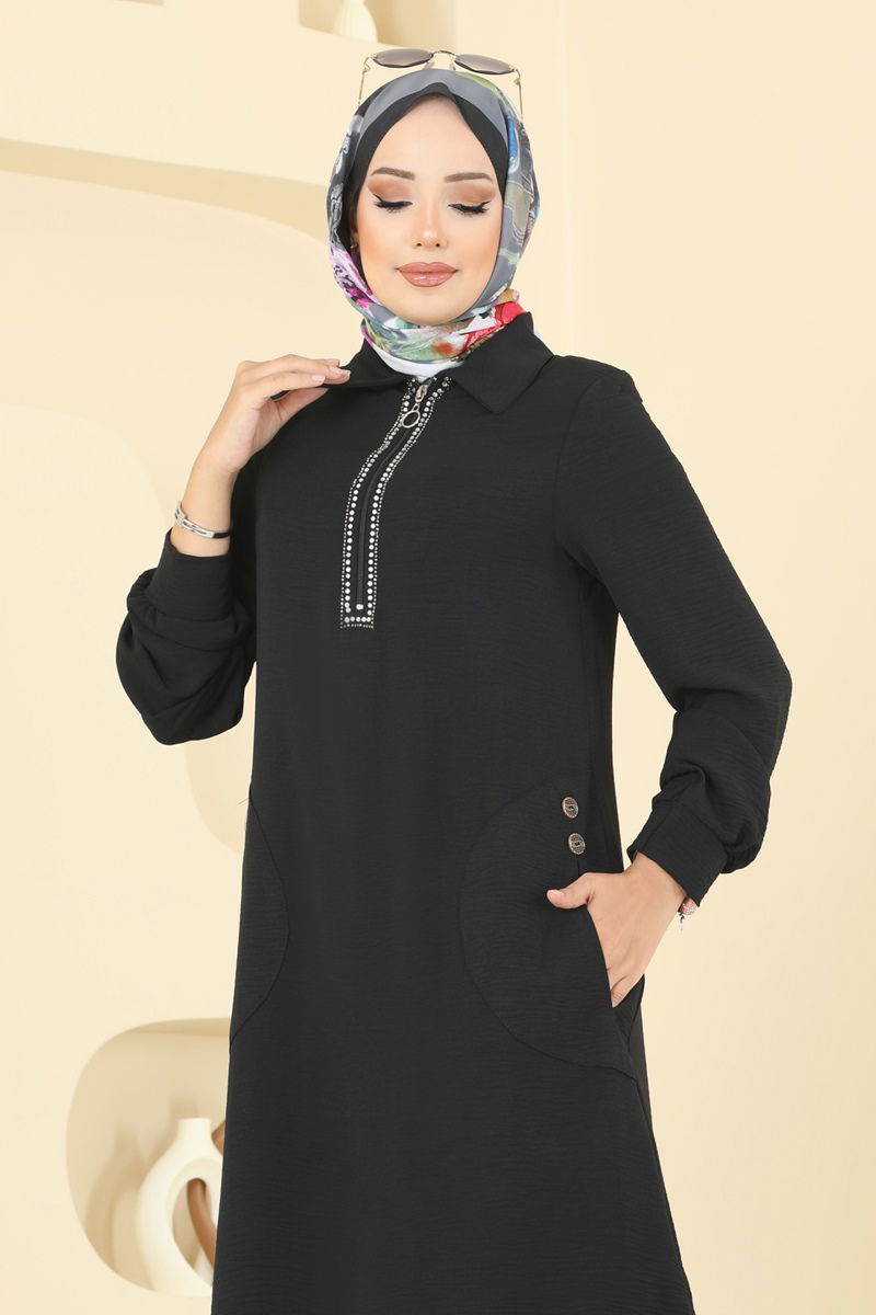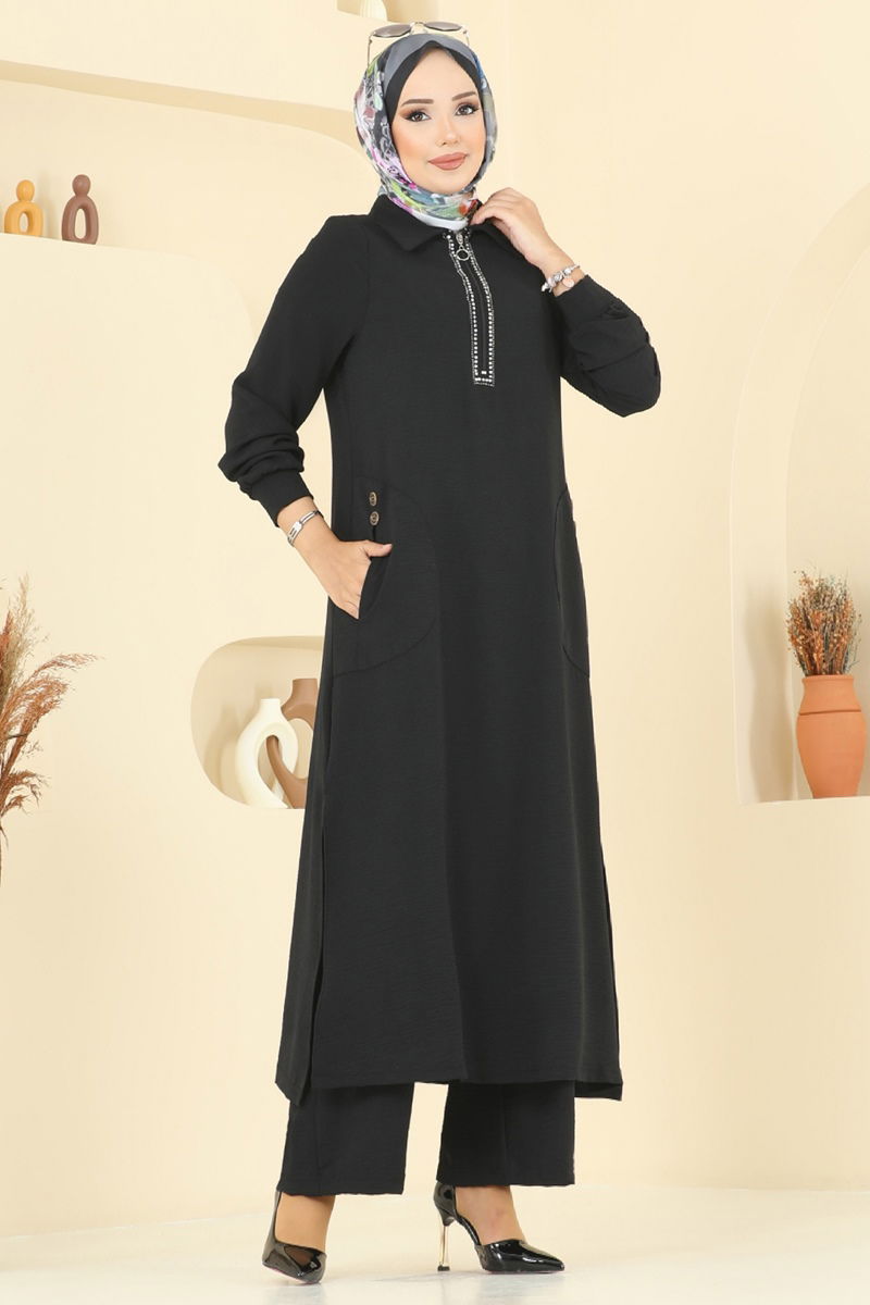 Yakası Taş Detaylı Tunik Takım 446DVL817-MS Siyah