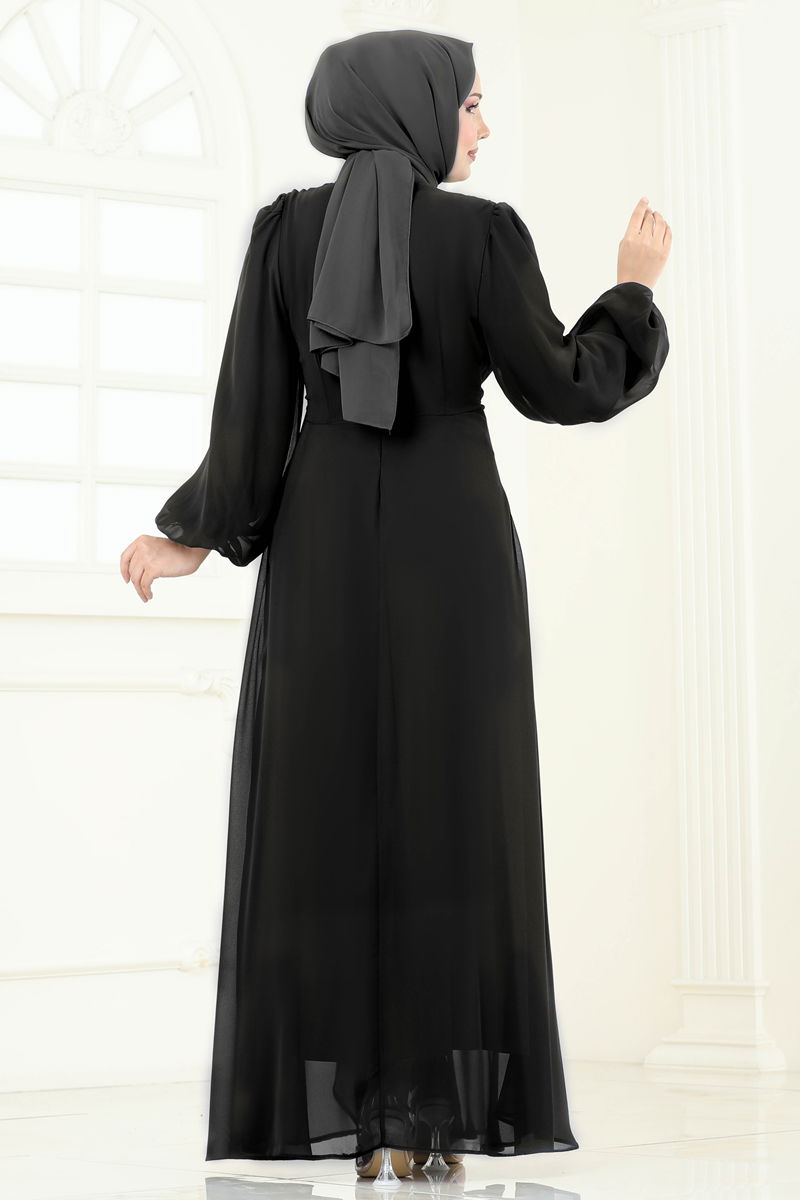 Yandan Bağcıklı Abiye Elbise 6226BSK463-MS Siyah