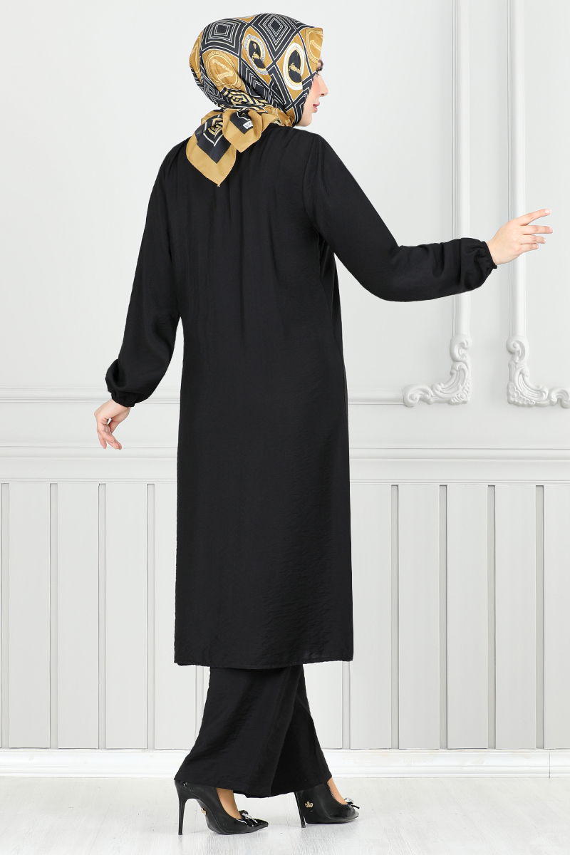 Yandan Düğmeli Tesettür Takım 4075PM1063-M Siyah