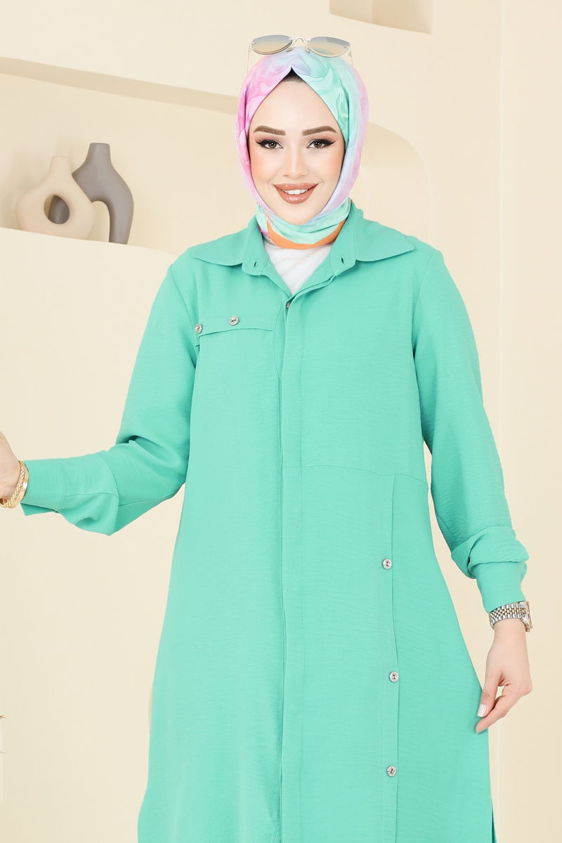 Ürün Detayları : Moda anlayışına uygun yeni sezon tesettür giyim ürünüdür. Gömlek tipi yakası bulunmaktadır. Üründe gizli düğme detayı mevcuttur. Dekoratif yırtmaç düğmeler eklenmiştir. Astar içermez. Düğmeler sadece süs olarak kullanılmıştır. Bluz ürüne dahil değildir, sadece kombin önerisi amaçlı kullanılmıştır. Pantolon ceplidir. Pantolonun bel kısmında elastik kullanılmıştır. Kol ağızlarında kullanılan düğmeler fonksiyoneldir.Ürün resimleri konsept çekimlerden dolayı renk farklılıkları gösterebilir.