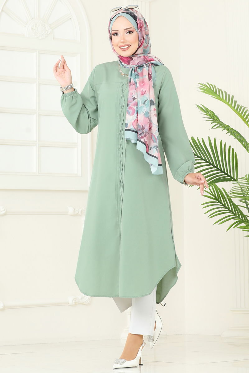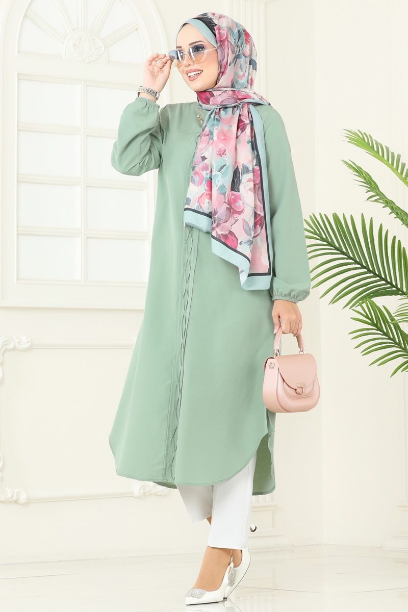 Mint Renkli Yandan Çıtçıtlı Terikoton Tunik