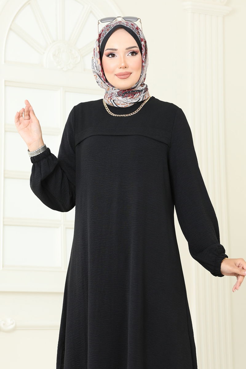 Siyah Renkli Yandan Yırtmaç Detaylı Tesettür Takım