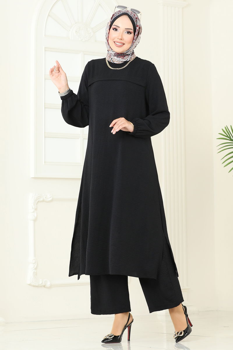 Yandan Yırtmaçlı Tesettür Takım 1996FON792-MS Siyah