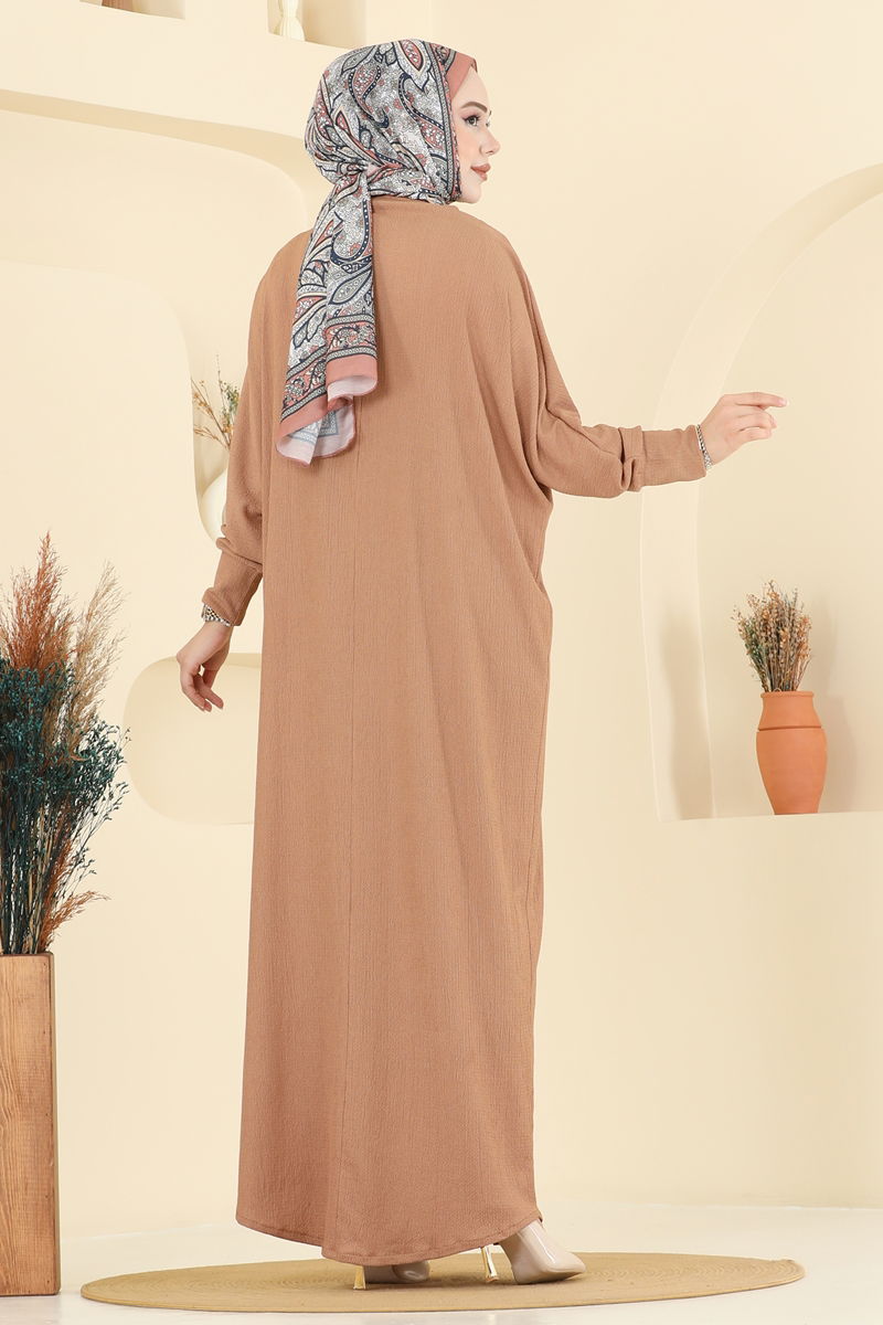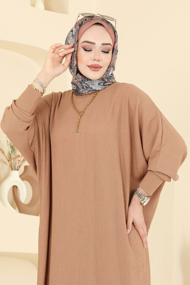Yarasa Kollu Bürümcük Elbise 2000ERK1158-MS Bisküvi