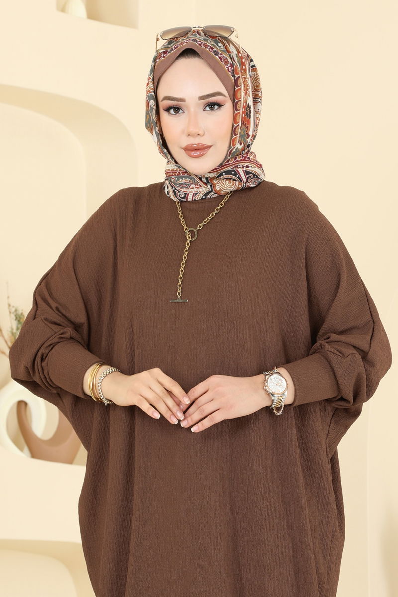Yarasa Kollu Bürümcük Elbise 2000ERK1158-MS Kahve
