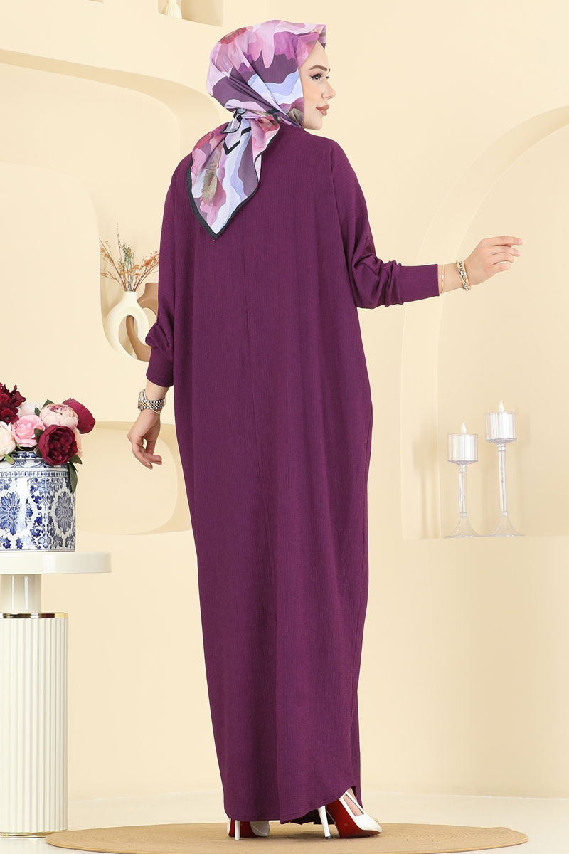 Yarasa Kollu Bürümcük Elbise 2000ERK1158-MS Mürdüm