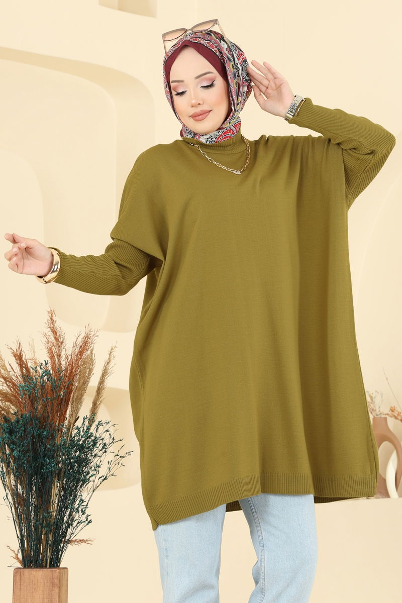 Yarım Boğazlı Triko Tunik 1047KLN570-MS Yağ Yeşili