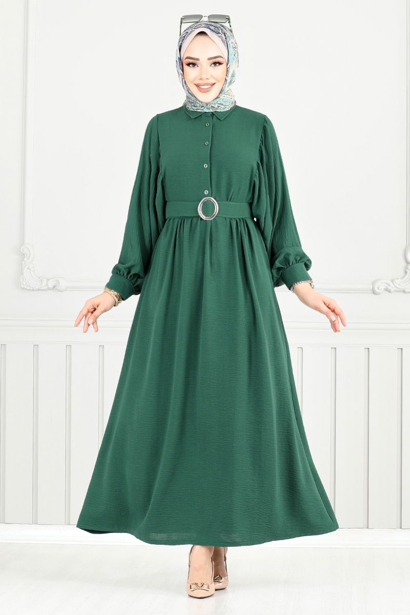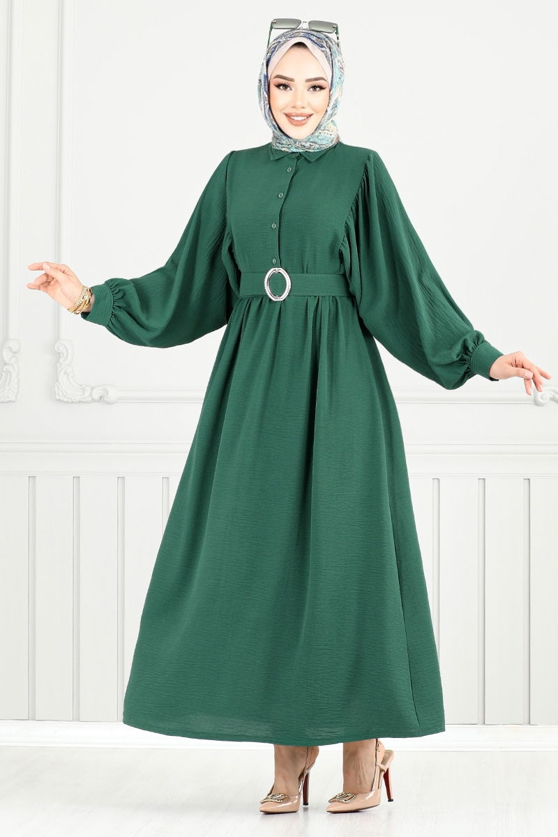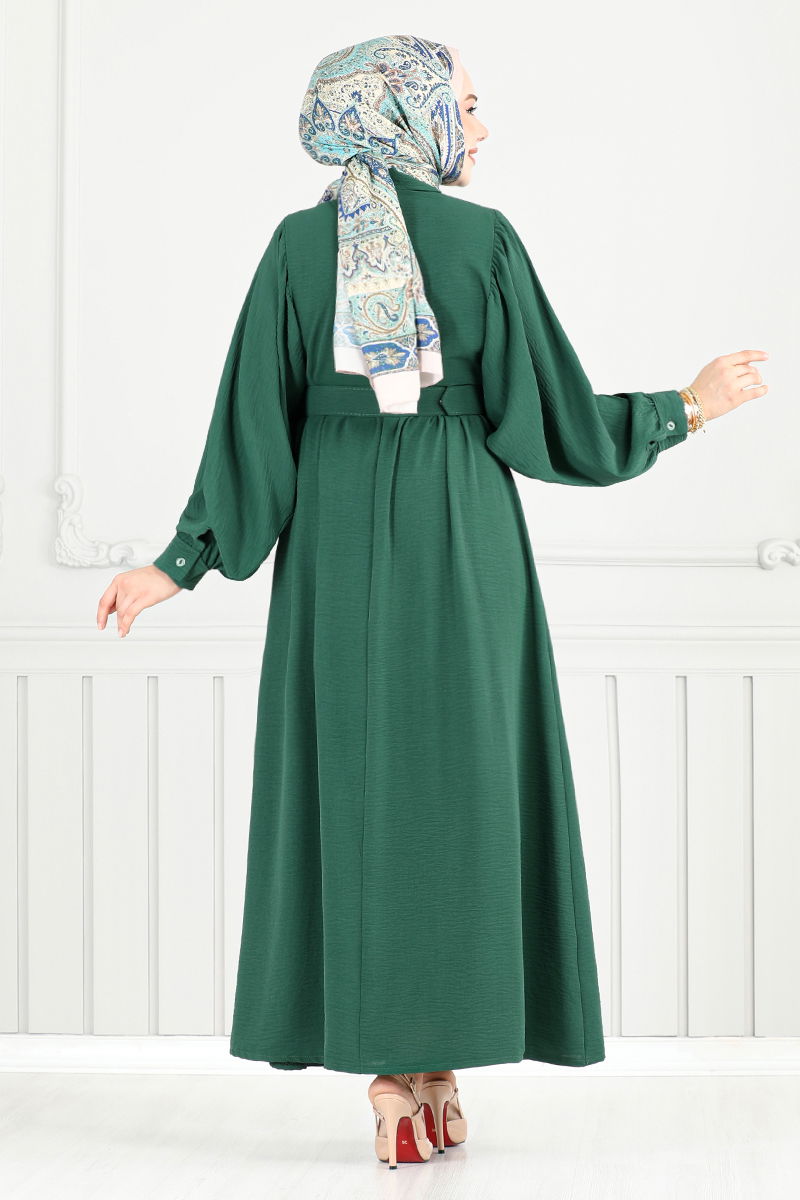 Yarım Düğmeli Aerobin Elbise 3071HBS932-M Zümrüt