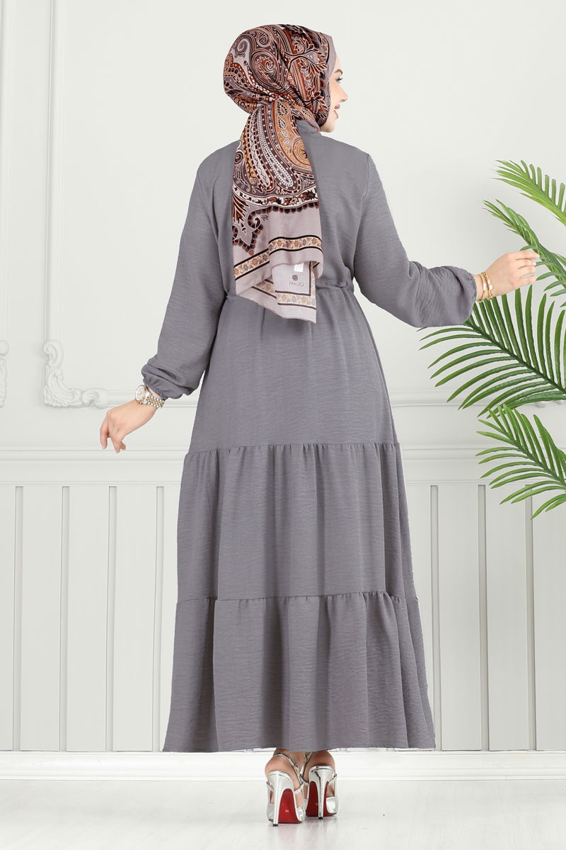 Yarım Düğmeli Elbise 024MR1078-MS Antrasit